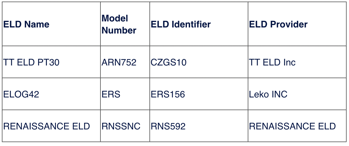 On September 4, 2025, FMCSA removed the following ELDs from the list of registered ELDs due to the companies' failure to meet the minimum requirements established in Title 49 CFR Appendix A to Subpart B of Part 395.